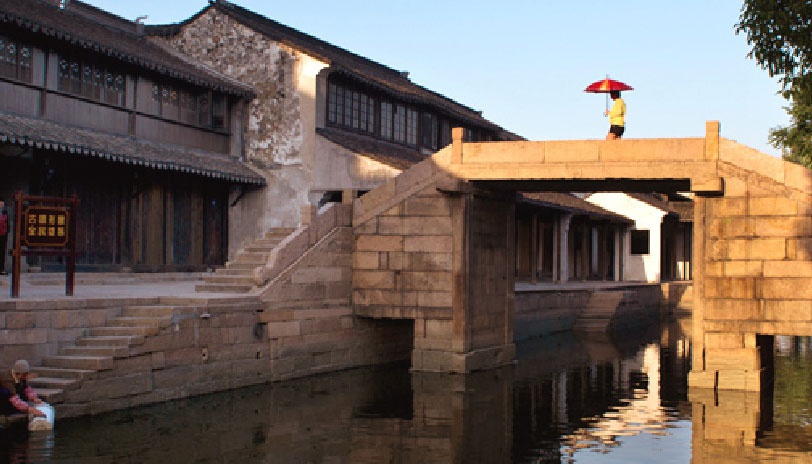 它们维系着河岸乡情,也贯穿着黎里古镇的前世今生。桥是人们休息和观景的地方,半月般的桥孔,如系在美人平滑小腹之上的腰扣,简洁而优雅。桥下,是明亮的流水;桥上,老人缓缓走过。