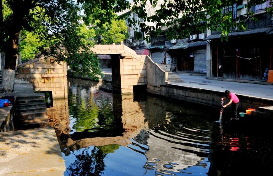 两条市河相交处为明月桥。明月桥,又叫杨家桥,关于这座桥还有这样一个故事。