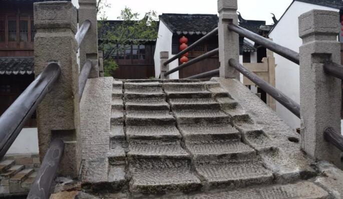 秋禊桥又名叽咕桥,在老街西北部秋禊道院旁,跨“定字型”市河北栅出口,东西走向三孔梁式石板桥。清初里人建。清雍正十三年重建。这座桥桥面贴水,由二十来块小石板如梯阶一般,横嵌在左右两道石槽间,登桥恰似行梯。踩在桥面上,石板块块作响,但是石晃人不晃,特别神奇。秋禊桥通往禊湖道院,道院坐落在水中央,从桥上走过去有种走向心静如水的化境中。