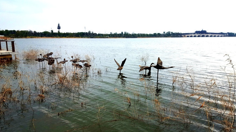 特别在炎热夏天的傍晚,荡面上吹来阵阵凉风,顿时吹走了人们的烦躁,公园内到处是笑声,人们还在这里享受烧烤纳凉的欢愉,而湖荡的蓝色情调给人以更浪漫的感觉。